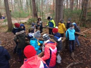 Am Freitag, den 17.11.2017, war die ganze Klasse 3c im Walderlebniszentrum Grünwald. Als wir in Grünwald angekommen waren, wartete bereits ein Förster auf uns. Er hieß Stefan. Schließlich haben wir Namensschilder aus Holz bekommen, bevor uns Förster Stefan das Gelände zeigte. Danach spielten wir Spiele. Das erste ging so: Man musste in einer Gruppe von drei Kindern und maximal einem Erwachsenen durch einen Trampelpfad gehen und dabei gut versteckte Holztiere suchen und finden. Beim nächsten Spiel bildeten die Kinder drei Mannschaften. Es gab die Menschen, die Zeit und die Tiere. Außerdem hatte jedes Team einen Eimer mit Stöcken. Jede Gruppe musste diese jeweils von der anderen wegnehmen. Dabei sagte Stefan den Menschen, sie sollen doch zwei Stücke von den anderen Mannschaften nehmen. Jetzt ärgerten sich natürlich die anderen Kinder und es kam zum Streit. Förster Stefan stoppte das Spiel und erklärte, dass die Menschen sich zu viel vom Wald nehmen - mehr als sie eigentlich dürfen. So verliert auch der Wald seine Macht und sinkt immer mehr in sich zusammen. Dann sagte er noch, dass es 300 Prozent zu viel Rehe in Bayern gibt. Damit war der Ausflug beendet und wir fuhren wieder zurück in die Schule.