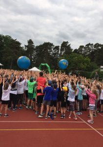 Am 6.5. machten wir uns also mit einer Auswahl von 36 Kindern auf den Weg nach Oberschleißheim ins Jahnstadion. Nach einer gemeinsamen Begrüßung und Aufwärmphase durch hochrangige Sportler aus dem Leichtathletikbereich durften sich die Schülerinnen und Schüler an insgesamt 11 Stationen ausprobieren. Unter anderem waren ein Staffellauf, ein Stabsprung und ein Zielwurf zu absolvieren. Besonders begeistert meisterten sie gemeinsam einen Transportlauf, bei dem Wasser von einem Becken zu einem anderen über einen Hügel gebracht werden musste.