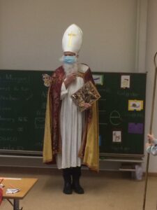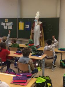 Als es plötzlich dreimal laut an der Tür klopfte, erwarteten unsere Erstklässler mit Spannung und großer Vorfreude den Besuch des Nikolaus. Es gab in jeder Klasse viel Gutes zu berichten. Der Nikolaus erinnerte uns aber auch daran, woran wir noch arbeiten müssen. Jede Klasse verabschiedete sich mit einem kleinen Gedicht. Das Nikolaussäckchen haben sich damit alle Kinder redlich verdient.