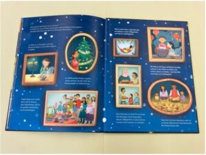 Gespannt lauschten die Kinder der 1. und 2. Klassen der Autorin, die ihr neuestes Buch „Ein Fest für alle“ vorlas. Es geht darum, dass nicht alle Weihnachten, sondern ganz unterschiedliche Feste feiern. Lustig fanden die Kinder, welche verschiedenen Feste von den Protagonisten erfunden wurden, zum Beispiel „Schneinachten“. Im Gespräch erzählten die Kinder, welche Feste sie zu Hause feiern. Maike Harel feiert mit ihrer Familie das Lichterfest Hanukkah, bei dem gleichzeitig möglichst viele Kreisel gedreht werden. Dies durften einige Kinder ausprobieren, was zu großer Begeisterung führte.