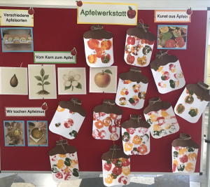 Unter dem Titel unseres aktuellen Jahresthemas: „Unsere Umwelt – eine Stimme“ entstand ein tolles Gemeinschaftsprojekt in verschiedenen Gruppierungen und Aktionen u.a. mit Partnerklassen. Neu in dieser Woche war, dass man sich an zwei Tagen, unabhängig von der Klasse, in sogenannte „Workshoptage“, die sehr engagiert von den Lehrkräften vorbereitet worden waren, anmelden konnte. Neben einer Apfelwerkstatt standen z.B. das Selbstbehauptungsprojekt „aufgschaut“, die Herstellung von Bienenwachstüchern als nachhaltige Verpackungshilfe, die Erstellung eines action bounds zu unserem Schulhaus oder die Teilnahme an einem Erste-Hilfe-Kurs zur Auswahl.