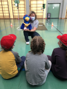 Seit einigen Jahren bekommt die Blutenburgschule daher professionelle Unterstützung beim Verkehrstraining der Erstklässler durch die ADAC Stiftung. Die ausgebildete Moderatorin hat den schlauen Raben ADACUS mit im Gepäck, der die Kinder beim Üben genau beobachtet und mit Tipps und Scherzen den Spaß beim Erlernen der wichtigsten Regeln nicht zu kurz kommen lässt.