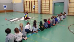Wie jedes Jahr nahmen die ersten Klassen am Projekt „Adacus“ des ADAC teil. Dem Raben Adacus zeigten wir, wie man eine Straße sicher überquert und was wir dabei beachten müssen.