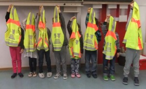 Die Kinder werden nicht nur im Unterricht durch gezielte Übungen auf den Straßenverkehr vorbereitet, sondern die Erstklässler erhalten auch Sicherheitswesten, die im Dunklen leuchten.